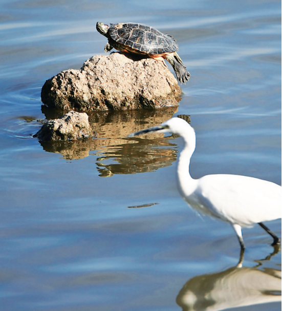 東湖國(guó)家濕地公園,動(dòng)物們?cè)诤杏崎e地覓食、曬太陽(yáng)。長(zhǎng)江日?qǐng)?bào)記者高勇 攝