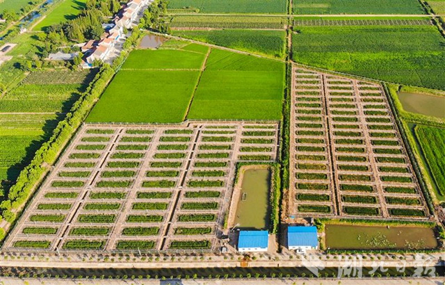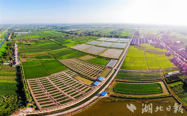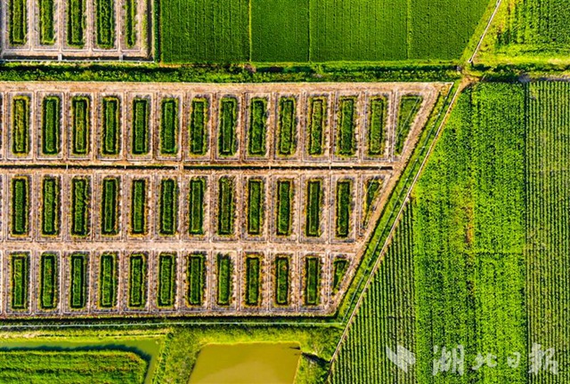 7月25日,俯瞰荊州市荊州區(qū)彌市鎮(zhèn)雙馬村雙柳樹稻蝦連作田,綠油油的稻田連接成片,構成一幅美麗的自然景觀。目前,雙馬村4000多畝水旱田開始了“雙水雙綠”種養(yǎng)模式,以“蝦稻林”“蝦稻鱖”“茭蝦稻”等稻田綜合種養(yǎng)“升級版”,走現(xiàn)代農業(yè)綠色高效發(fā)展之路。(視界網(wǎng)黃志剛攝)