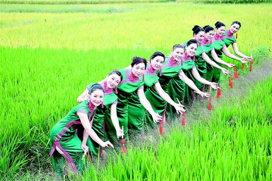 9月12日,公安縣天露湖國家農(nóng)業(yè)公園金燦燦的稻田里,民間文藝愛好者共慶今秋豐收。當日,首屆中國農(nóng)民豐收節(jié)·公安篇活動舉行。公安縣深化農(nóng)村各類改革,現(xiàn)代農(nóng)業(yè)持續(xù)高速發(fā)展,公安葡萄、公安牛肉、閘口小龍蝦、章田寺大米等多個品牌榮獲國家地理標志證明商標。