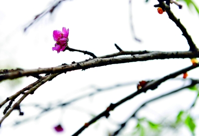 25日,長江日報(bào)記者在金銀湖濕地公園看到,園內(nèi)的梅樹、李樹、桃樹、櫻花樹、海棠樹等都存在少量開花的現(xiàn)象。