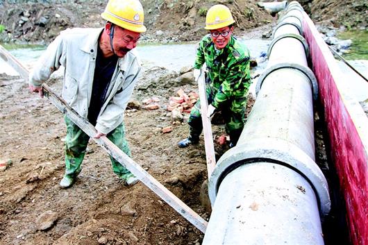 12月1日,施工人員在房縣化龍堰鎮(zhèn)高川段安裝連接集鎮(zhèn)污水處理廠的主管網(wǎng)。房縣建設(shè)鄉(xiāng)村污水處理廠,綜合治理黑臭水體。目前,房縣建成村級生活污水處理設(shè)施100多座,129個村生活污水處理率達(dá)到80%以上,還有15個鄉(xiāng)鎮(zhèn)生活污水處理廠新建項目、5個鄉(xiāng)鎮(zhèn)污水處理提標(biāo)升級項目正在加緊施工,預(yù)計到今年底可全面建成通水,為城鄉(xiāng)河流水環(huán)境再提級達(dá)標(biāo)提供保障。