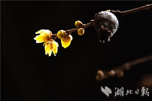 12月26日,在湖北秭歸屈原故里景區(qū)屈原祠內(nèi)拍攝的蠟梅。寒冬時(shí)節(jié),蠟梅盛放,花似蜜蠟,馨香肺腑,形成一道冬日溫情風(fēng)景線。(視界網(wǎng)王罡攝)