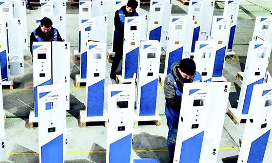 2月26日,湖北追日電氣股份有限公司(襄陽)員工在裝配充電樁。近年來,該公司在行業(yè)內(nèi)率先開發(fā)出歐標(biāo)和日標(biāo)等領(lǐng)先水平的電動汽車充電產(chǎn)品,并成功應(yīng)用于法國、德國、日本等30多個國家汽車廠商,走在了“充”向世界的前列。