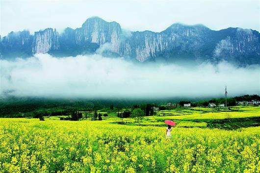 春分日,恩施大峽谷云霧繚繞,與萬仞絕壁和油菜花一起,繪就一幅水墨畫卷。 (視界網(wǎng) 肖華林 攝)