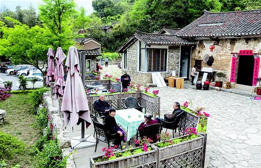 4月13日,在遠(yuǎn)安縣龍鳳村龐家灣網(wǎng)紅景區(qū)——拈花谷民宿,游客們在群山環(huán)抱的古村落里,吃農(nóng)家菜、住古民居,享受生態(tài)田園慢生活。龐家灣自明朝起為龐氏族人聚集地,有明清風(fēng)格天井房20多棟。近年來,遠(yuǎn)安縣發(fā)展全域旅游,利用龐家灣、金家灣、翟家?guī)X、武陵峽等村落的獨(dú)特地理環(huán)境與特色民居,將其打造成集吃住行、游玩娛樂購物等于一體的精品民宿旅游區(qū)。(湖北日報(bào)全媒記者 劉曙松 通訊員 黃海濤 劉中一 攝)