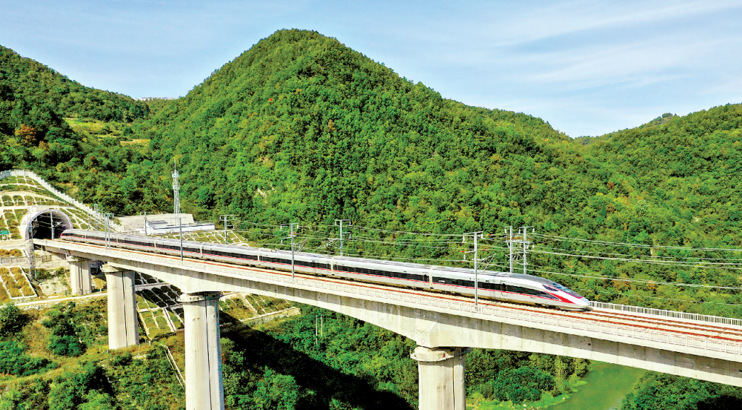 11月4日上午10時(shí)許,漢十高鐵十堰東站內(nèi),由8節(jié)車廂組成的高鐵車組靜靜地停泊在軌道上,工作人員正在為它進(jìn)行細(xì)致的“體檢”。11時(shí)30分,高鐵車組啟動(dòng),緩緩駛出車站,速度迅速爬升,轉(zhuǎn)眼已是風(fēng)馳電掣……穿越武當(dāng)山景區(qū)、丹江口水庫(kù),朝著襄陽(yáng)、漢口方向一路疾馳。楚天都市報(bào)記者體驗(yàn)發(fā)現(xiàn),嶄新的車廂里,座位跟動(dòng)車及普通列車相比都寬敞不少,在每個(gè)座位的下方,都配備有手機(jī)充電插口。列車高速運(yùn)行中,感覺(jué)非常平穩(wěn),穿越隧道,跨過(guò)橋梁,時(shí)值深秋初冬,窗外時(shí)而漫山紅葉,時(shí)而一泓碧水,時(shí)而收割后的稻田,時(shí)而靜謐的村落,都隨著火車的呼嘯一閃而過(guò),堪稱路暢景美,1小時(shí)50分鐘后,列車平穩(wěn)地抵達(dá)漢口站。試運(yùn)行高鐵經(jīng)過(guò)十堰市泗河大橋。
