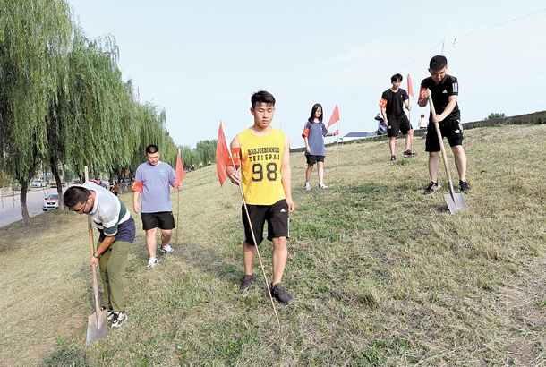 7月14日,黃梅縣小池鎮(zhèn)新河橋社區(qū)“00后”大學生組成青年突擊隊,在黃廣大堤小池段巡堤查險。長江發(fā)生嚴重汛情后,十幾名“00后”大學生主動向社區(qū)提出申請參加抗洪。