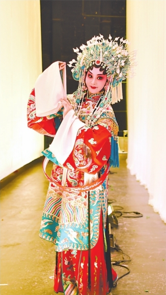 福建省龍巖市漢劇傳習(xí)中心演員、《狀元媒》中柴郡主扮演者林周楠穿戲服后盡顯大家風(fēng)范。