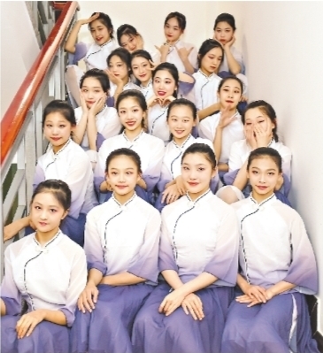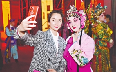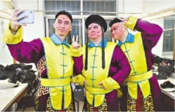 福建省龍巖市漢劇傳習(xí)中心演員演出前在后臺自拍。