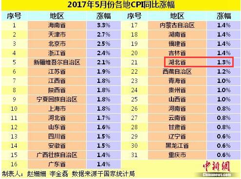 數(shù)據(jù)顯示,海南5月份CPI同比漲幅為3.3%,漲幅全國(guó)最高,也是5月份全國(guó)僅有的CPI漲幅進(jìn)入“3時(shí)代”的地區(qū)。
