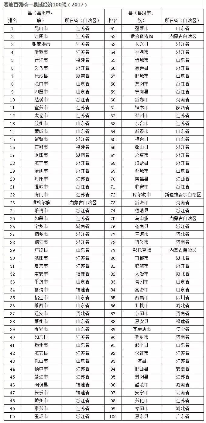 賽迪百強(qiáng)榜-縣域經(jīng)濟(jì)100強(qiáng)(2017)顯示,截至今年6月,除港澳臺(tái)外,全國縣級行政區(qū)共計(jì)1897個(gè),包括366個(gè)縣級市、1360個(gè)縣、117個(gè)自治縣、49個(gè)旗、3個(gè)自治旗,1個(gè)林區(qū)、1個(gè)特區(qū)。此次發(fā)布的縣域百強(qiáng)榜加重了對綠色發(fā)展成效的考量,我省宜都市位列全國第80位,大冶、仙桃、棗陽分別排名82、86和99位。