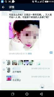 楚天都市報(bào)訊 圖為:網(wǎng)戀“女友”朋友圈截屏
