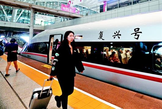 圖為:昨日下午,“復(fù)興號”動車組首次抵達(dá)武漢站