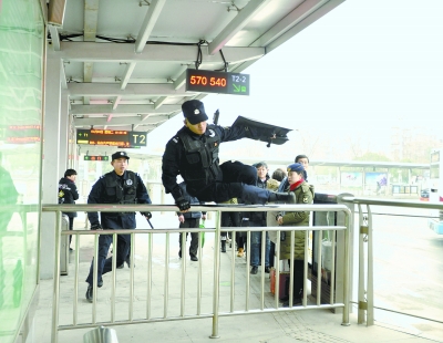23日10時(shí),武昌火車站東廣場公交站臺進(jìn)站口處,站臺工作人員正在用金屬探測儀對乘客進(jìn)行安全檢查。這時(shí),一男子叼著煙來到閘機(jī)口!盀榱四推渌丝桶踩,麻煩您把煙滅掉”,站臺工作人員數(shù)次提醒該男子,哪知他置若罔聞并強(qiáng)行闖入站臺內(nèi),并上了一輛BRT1路公交車。