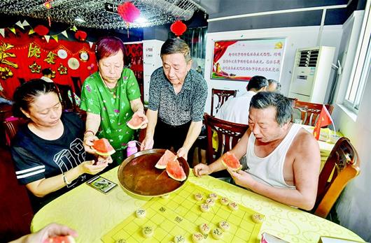 下午兩點(diǎn)半,不少老人來到納涼點(diǎn)避暑。69歲的葉婆婆告訴記者,她是2012年住進(jìn)文卉苑的,剛住進(jìn)來時(shí),家里沒有買空調(diào),只有兩個(gè)電扇,天熱時(shí)就吹電扇。前兩年買了空調(diào)后,她一個(gè)人在家舍不得用,只有家人都在家,他們才會(huì)吹一會(huì)兒空調(diào)。在社區(qū)納涼點(diǎn),葉婆婆一邊吹著空調(diào),一邊做著手工活。