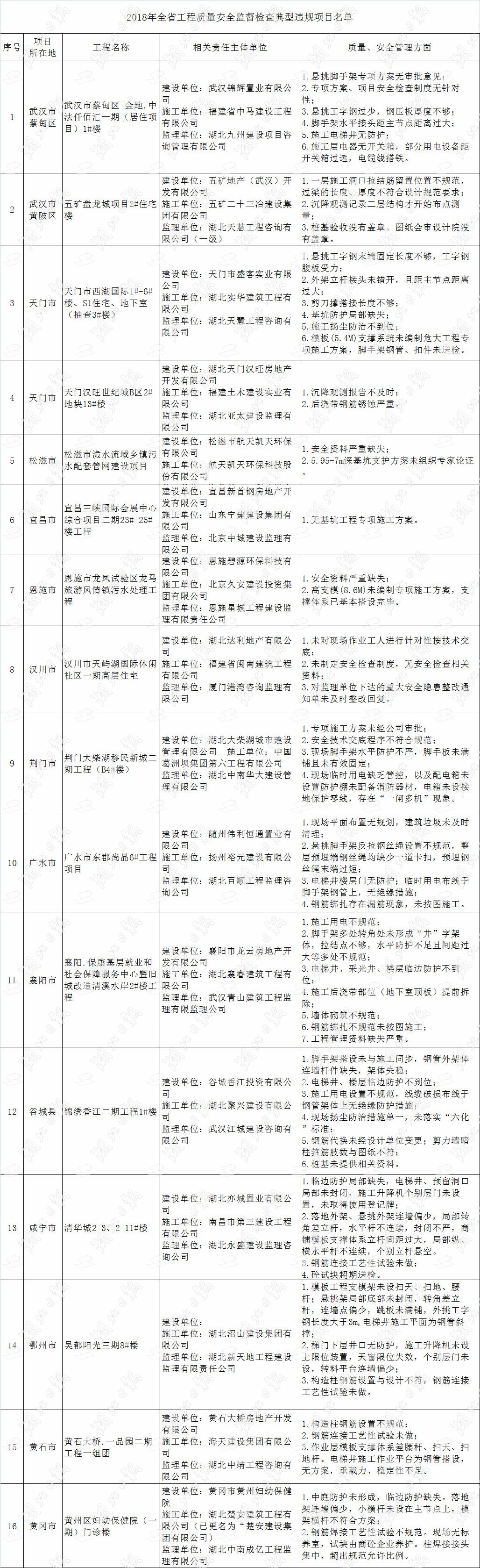 湖北日?qǐng)?bào)訊 (記者彭一葦、通訊員劉姝、魯勇)7月25日,省住建廳通報(bào)了2018年全省工程質(zhì)量安全監(jiān)督檢查情況,此次共抽查房建工程、鄉(xiāng)鎮(zhèn)生活污水處理工程、易地扶貧搬遷安置工程等92項(xiàng)在建工程,針對(duì)發(fā)現(xiàn)的突出問題,督查組直接下達(dá)執(zhí)法建議書10份、責(zé)令限期改正通知書11份。