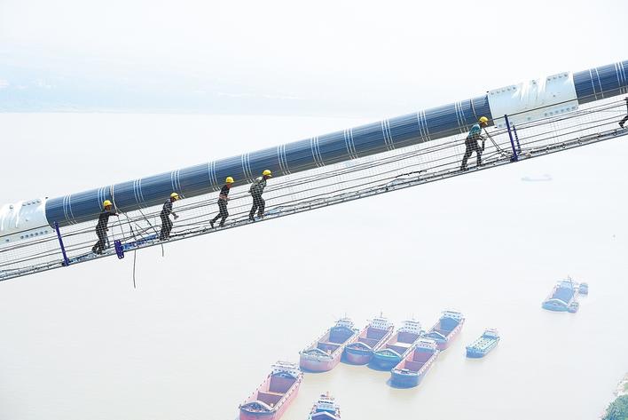 200米高空,雙柳長(zhǎng)江大橋扎上“鋼鐵辮”