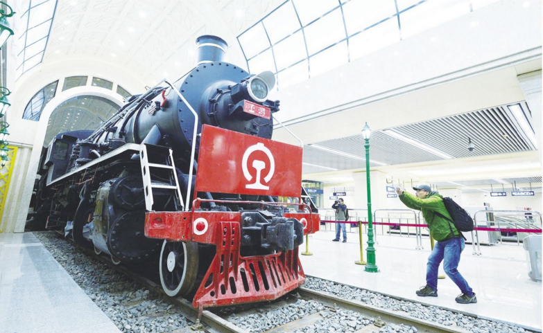 進入到地鐵6號線的大智路站點,首先映入眼簾的就是一個老式蒸汽火車頭,“這是目前為止進入到地鐵站點中最大最重的老物件!眮碜员本┏墙ㄔ旱脑O計師吳新宇介紹。