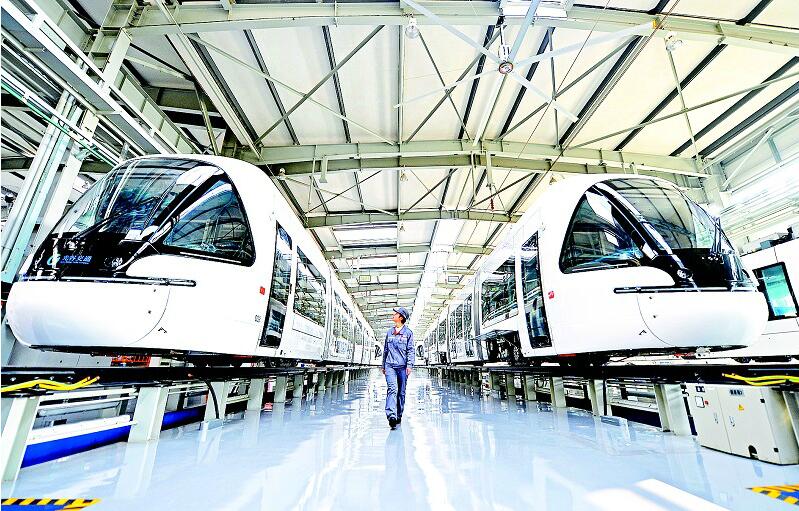 圖為位于武漢市黃陂區(qū)的有軌電車生產(chǎn)線。(記者 倪娜 攝)