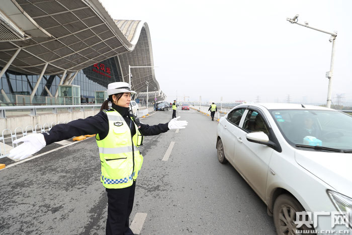 11月16日,武漢火車(chē)站,武漢市交通管理局鐵路大隊(duì)民警正在疏導(dǎo)交通。