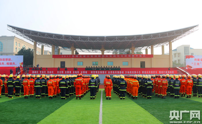 央廣網(wǎng)武漢12月5日消息(記者左艾甫 張卓)12月5日,湖北消防部隊實戰(zhàn)化比武競賽在武漢擂鼓開戰(zhàn)。全省14支代表隊600名參賽隊員齊聚江城,將在本次湖北消防部隊規(guī)模最大、層次最高、理念最新、實戰(zhàn)性最強的比武競賽中展開消防業(yè)務(wù)技能大比拼。