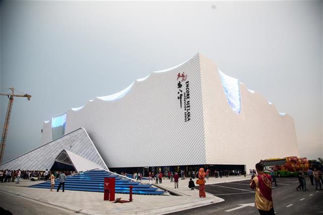 馬六甲印象歌劇院是馬六甲最大單體公共建筑,可同時(shí)容納2000名觀(guān)眾。主體共6層,結(jié)構(gòu)凈高33.6米,總建筑面積68796.5平方米。中建三局項(xiàng)目執(zhí)行經(jīng)理介紹,在項(xiàng)目早期概念設(shè)計(jì)中,建筑外形整體像一片翠綠的荷葉,細(xì)節(jié)部分也融入了中國(guó)陶瓷、絲綢、茶葉等諸多元素。在項(xiàng)目建設(shè)中,業(yè)主出于成本與工期的考慮,改變了整個(gè)建筑的外形,整體呈四方形,藍(lán)色的建筑外套白色的幕墻,簡(jiǎn)潔大方,對(duì)映著馬六甲海峽的藍(lán)天白云,美輪美奐。