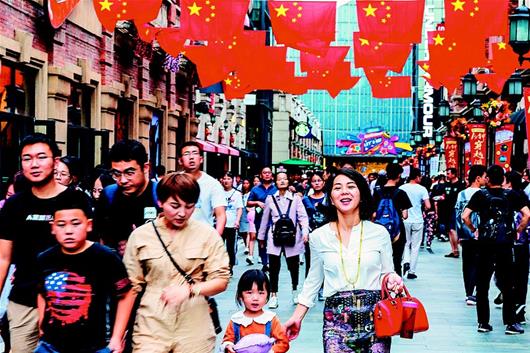 圖為:10月3日,武漢漢街游人如織,人頭攢動。(湖北日報全媒記者 梅濤 攝)
