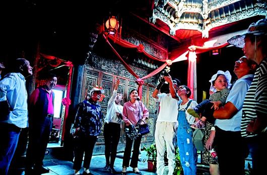 圖為:10月4日,武漢市新洲區(qū)鳳娃古寨景區(qū),游客游覽古民居建筑,欣賞民俗歌舞表演。(湖北日報全媒記者 劉曙松 通訊員 沈雷平 攝)