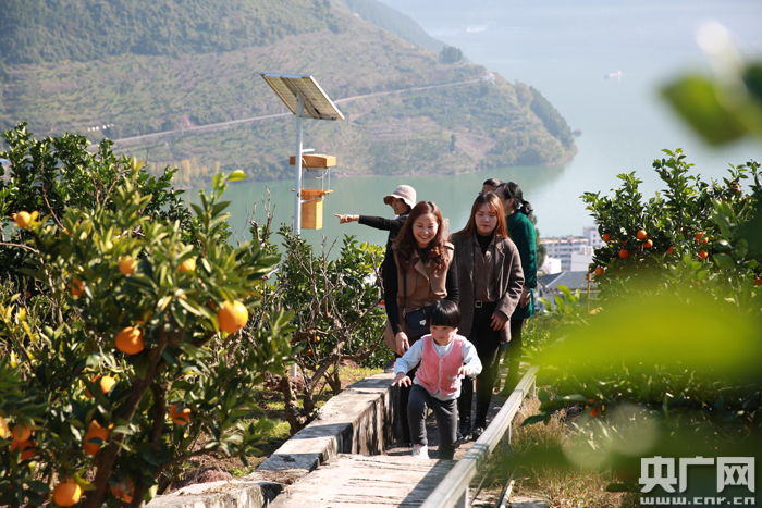 放眼望去,成片的橘林遍布在長江兩岸,黃澄澄、金燦燦的柑橘點(diǎn)綴其間,構(gòu)建了一幅林水相依、生態(tài)優(yōu)美的美麗畫卷。以長江為背景,依偎著橘樹,大家不停地忙著在橘園拍照留影。橘園里,游客們不僅可以欣賞漫山遍野的橘林美景,還能親自采摘品嘗新鮮橘子。
