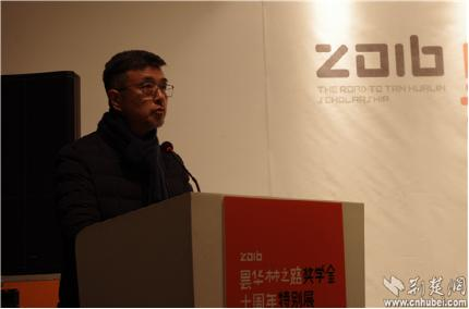 頒獎(jiǎng)儀式上,湖北美術(shù)學(xué)院院長(zhǎng)徐勇民致辭“沿曇華林之路走到今天,一年年過去,一幕幕閃現(xiàn)。典曲目不需要彩排,臺(tái)上主人公的學(xué)業(yè)過往藝術(shù)腳步編織的其實(shí)是中國(guó)故事經(jīng)。要記住,即便無人等候,也要越過每一座山丘!