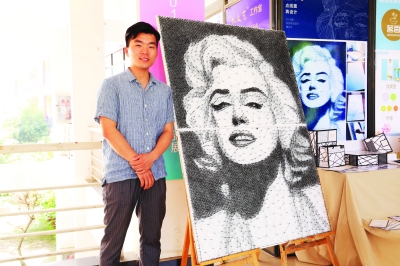 本報訊(記者楊佳峰 通訊員曾晗)昨天,武漢科技大學城市學院藝術學部優(yōu)秀畢業(yè)設計展在該校展出。一幅由9000多顆釘子和線團制作的163cm×120cm 巨型瑪麗蓮·夢露肖像吸引了不少學生駐足拍照。
