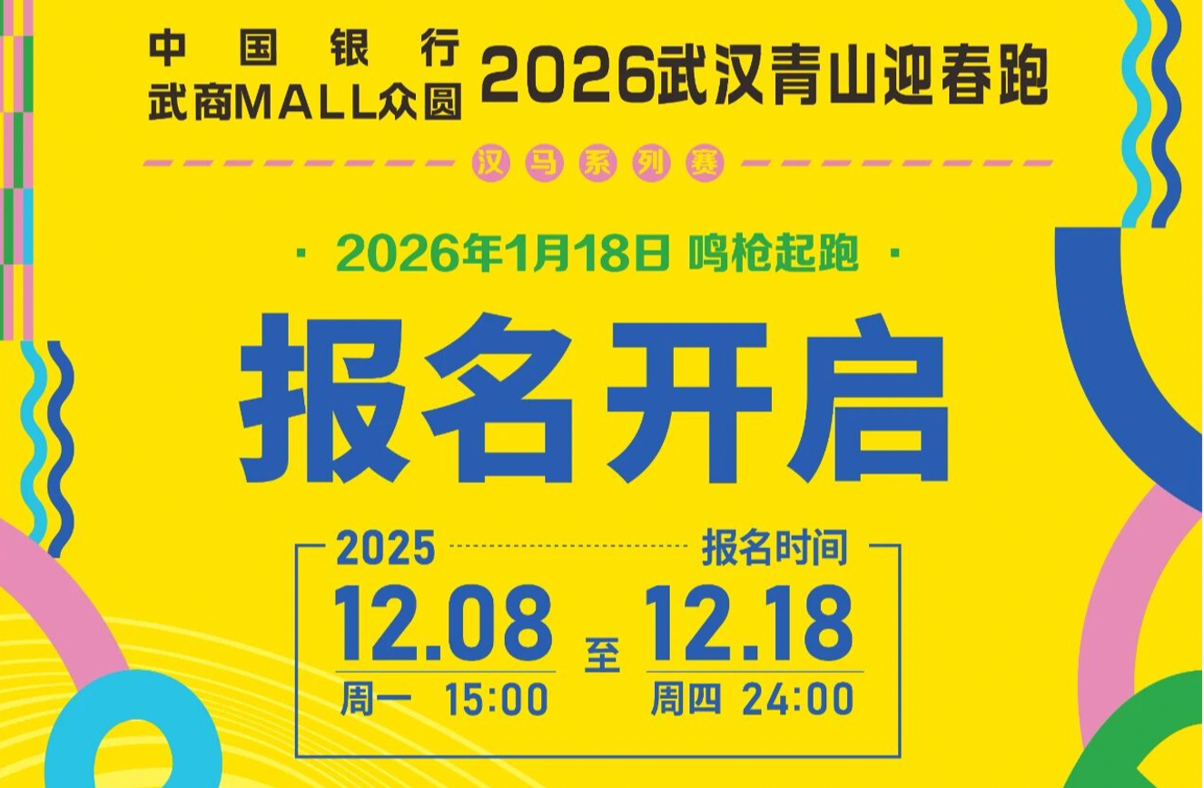2026武漢青山迎春跑將于2026年1月18日上午8:00熱力開跑。目前賽事報名已進入倒計時階段,將于2025年12月18日24點正式截止。