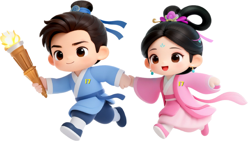 吉祥物靈感源自孝感非遺《董永與七仙女》傳說,以“槐蔭為媒”為原型,融合董永的淳樸堅韌與七仙女的靈秀神性,塑造出兼具傳統(tǒng)韻味與運(yùn)動美學(xué)的形象。二者陽光親和、活力奔跑,既體現(xiàn)“發(fā)展體育運(yùn)動、增強(qiáng)人民體質(zhì)”的宗旨和全民健身理念,又彰顯更快、更高、更強(qiáng)的體育精神,展現(xiàn)孝感體育特色,傳遞健康生活的美好祝愿。