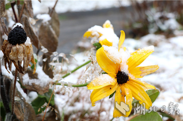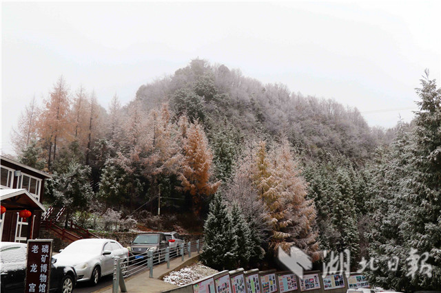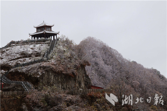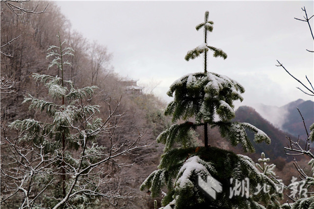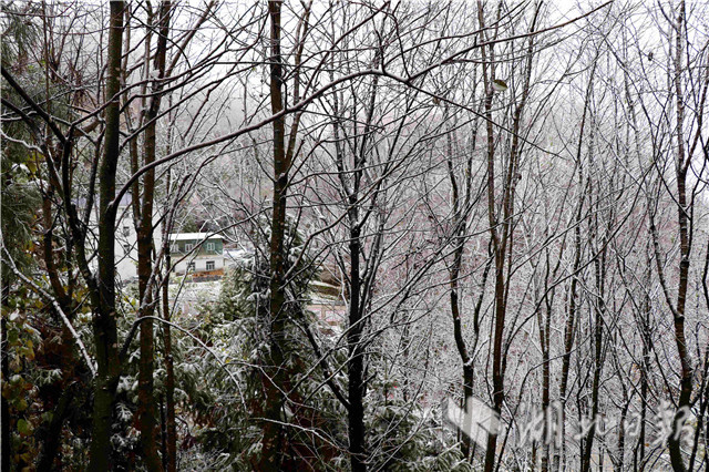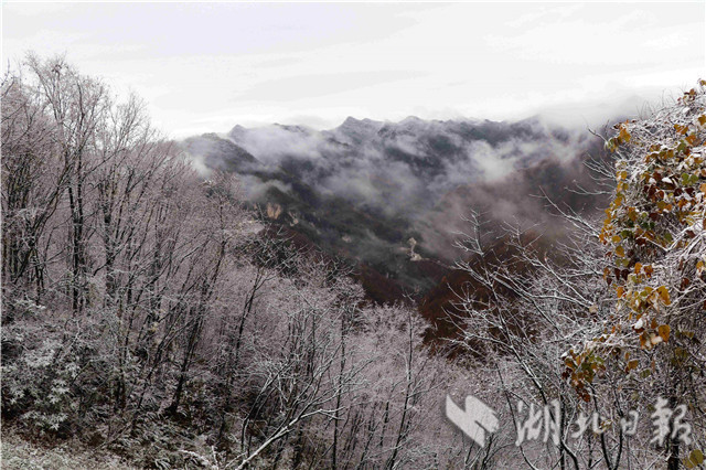 11月6日,在保康縣馬橋鎮(zhèn)堯治河村梨花山拍攝的雪景。當(dāng)日,受冷空氣影響,?悼h馬橋鎮(zhèn)、龍坪鎮(zhèn)等海拔1200米以上的高山地區(qū)降下今年入秋以來(lái)第一場(chǎng)雪。(視界網(wǎng)楊韜張強(qiáng)攝)