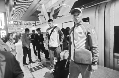 19點43分,列車緩緩進站停穩(wěn),只見蒙古代表團成員統(tǒng)一身著白藍紅三色的隊服下車。運動員們拿著行李從D3出口出站,跟隨工作人員的指引來到一樓西出站口,5輛大巴車和4輛行李車在門口等候。談到乘坐高鐵的感受,蒙古運動員紛紛稱贊中國高鐵的方便快捷、武漢的交通便利。