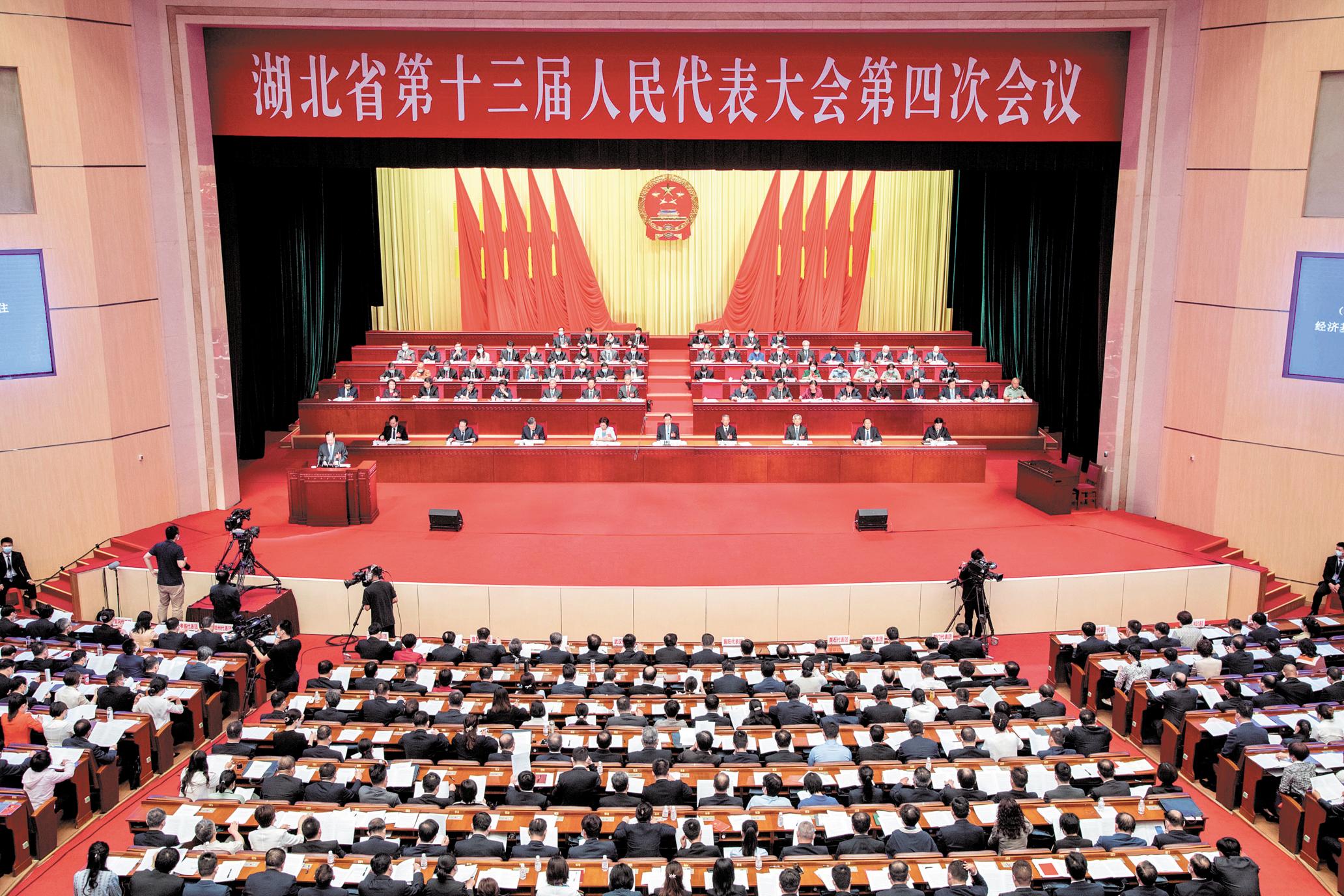 6月18日,湖北省第十三屆人民代表大會(huì)第四次會(huì)議在武昌洪山禮堂開幕。(湖北日?qǐng)?bào)全媒記者 魏錸 攝)