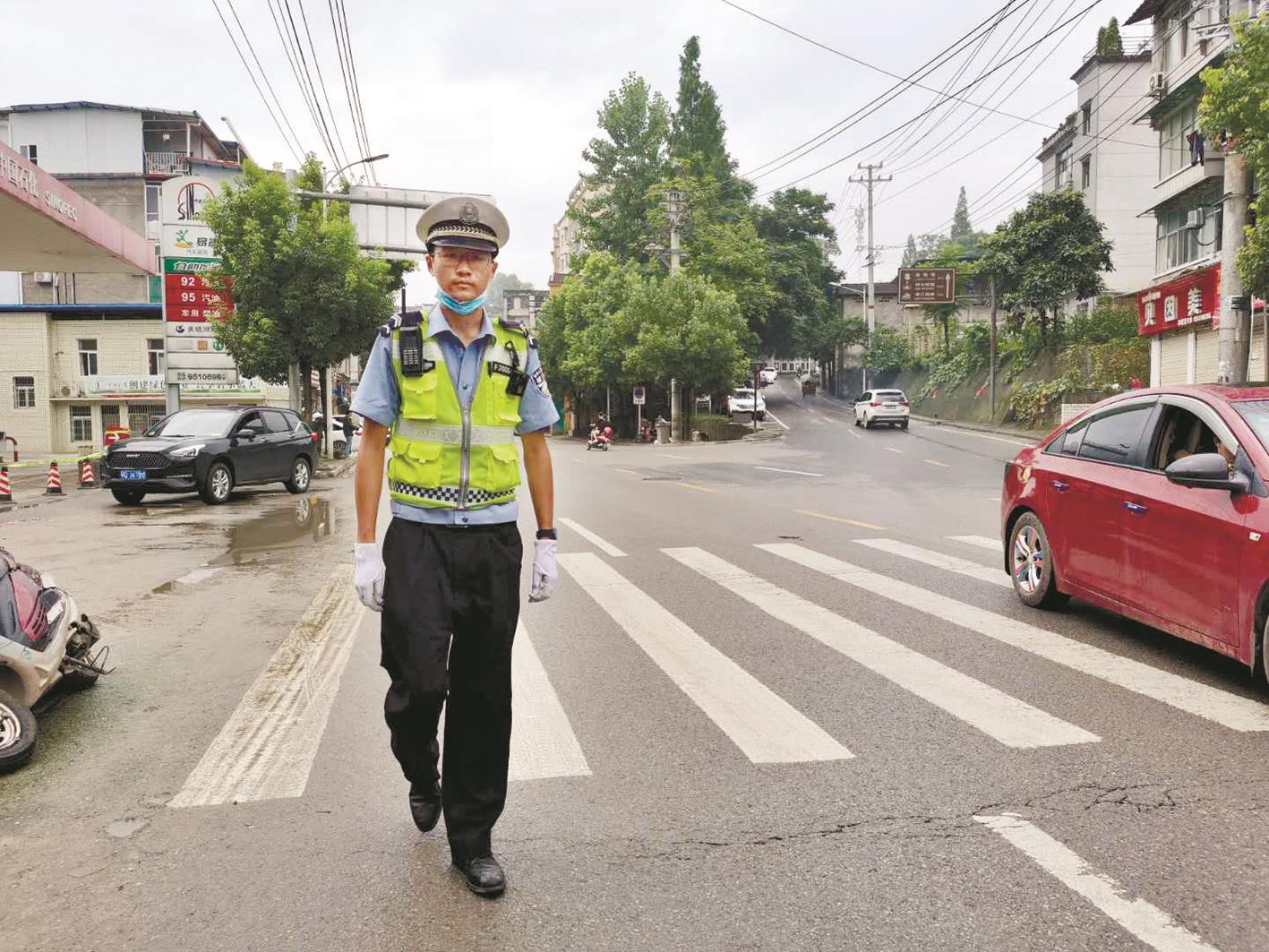 “他日常工作就是街面執(zhí)勤巡邏,小伙很敬業(yè)!闭勂鹂岛,六角亭交警中隊(duì)中隊(duì)長岳艷對他平時(shí)的工作非?隙ā1999年出生的康弘很靦腆,參加工作有兩年了,葉挺路是他日常巡邏的區(qū)域!扒皫状伟l(fā)大水,我看見他經(jīng)常都是光著腳在附近巡邏,維持秩序。”熱心市民熊女士向記者說道。