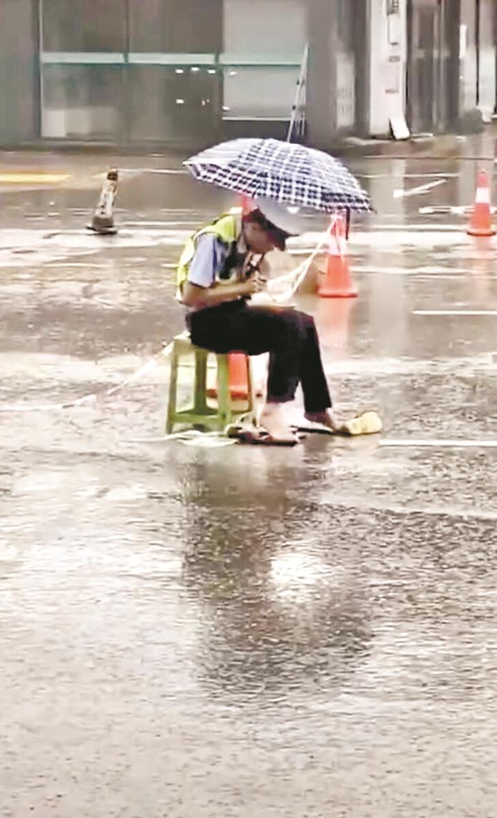 楚天都市報(bào)訊(記者陳俊 通訊員文方舉)大雨中,交通輔警坐在路中央吃盒飯,光腳踩在膠靴上。一手拿筷子,一手撐雨傘,還不時(shí)抬頭揮手勸返車輛。這幾天,人民日報(bào)轉(zhuǎn)發(fā)的一則視頻在網(wǎng)上很火,網(wǎng)友們紛紛留言表示被感動(dòng)。記者昨日了解到,吃盒飯的是恩施市公安局交警大隊(duì)輔警康弘,同事們根據(jù)他的名字諧音打趣叫他“抗洪哥”。