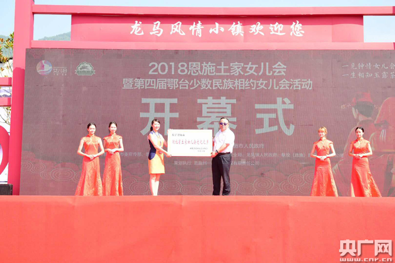 湖北省文聯(lián)黨組成員、副主席肖偉池現(xiàn)場(chǎng)授予恩施市“湖北省土家女兒會(huì)文化之鄉(xiāng)”的稱號(hào)。