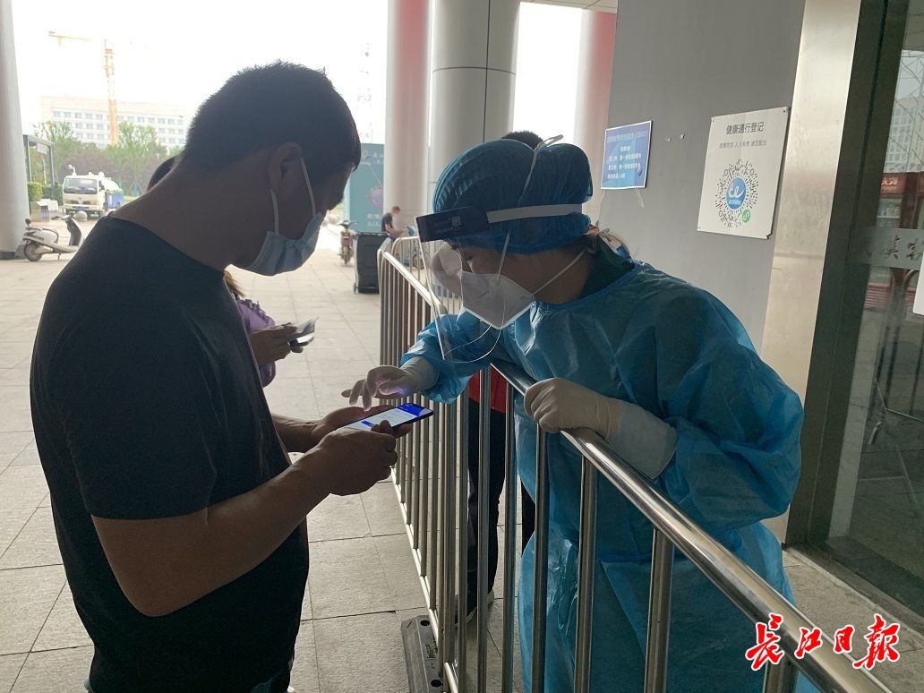記者探訪多個新冠疫苗接種點(diǎn)發(fā)現(xiàn),居民全程自覺佩戴口罩,各接種點(diǎn)嚴(yán)格執(zhí)行掃碼測溫,在武漢市金銀潭醫(yī)院武漢客廳新冠疫苗臨時接種點(diǎn),大廳門口排著長隊(duì),指示牌上標(biāo)明:“本接種點(diǎn)按防控要求入內(nèi),一人一碼!惫ぷ魅藛T要求每人都掃碼測溫,即使健康碼和行程卡都無異常,工作人員也要詢問近期是否去過中高風(fēng)險地區(qū),審核完成后接種人員方可進(jìn)入一樓等候區(qū)。