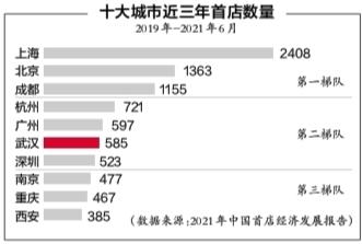 《報告》顯示,自2019年1月到2021年6月,武漢引進(jìn)和培育的首店達(dá)585家,位列全國第六,穩(wěn)居首店經(jīng)濟(jì)“第二梯隊”。特別是今年上半年,武漢首店經(jīng)濟(jì)發(fā)展迅猛,新開首店195家,排名全國第五,趕超勢頭正勁。 隨著資本市場入局新消費(fèi)領(lǐng)域,線下拓店速度正在加快。如今,上海、北京、深圳、武漢、成都等是“新消費(fèi)”品牌制造地和老字號煥新培育地。 作為城市消費(fèi)能級及商業(yè)活力的象征,城市間的首店爭奪戰(zhàn)將日趨激烈。