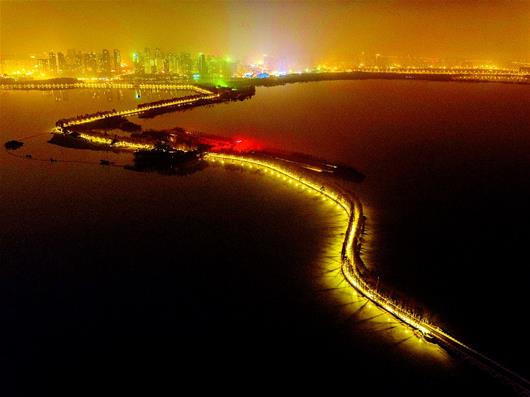 圖為夜幕中的東湖綠道流光溢彩。(資料圖片 記者 梅濤 攝)