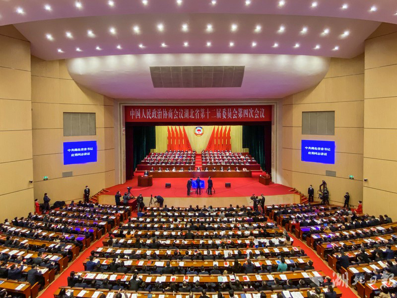 2021年1月23日上午,政協(xié)湖北省十二屆四次會議在武漢洪山禮堂隆重開幕。(湖北日報(bào)全媒記者 魏錸 攝)