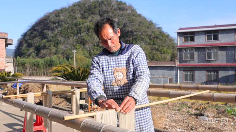 待粉皮晾至半干,送入切絲機(jī)切成大小粗細(xì)均勻的粉條,在陽(yáng)光下自然曬干后,原汁原味的大圩紅薯粉便制作完成。憑借爽滑勁道、久煮不糊、粉香純正、營(yíng)養(yǎng)天然的獨(dú)特優(yōu)勢(shì),贏得消費(fèi)者的廣泛青睞,成為走親訪友的優(yōu)選饋贈(zèng)佳品,更成了村民家門口增收致富的“香餑餑”。
