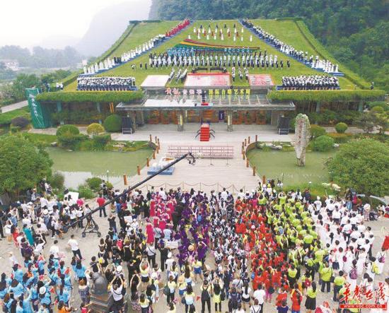 8月21日上午,2017黃龍音樂季·國(guó)際合唱藝術(shù)周在張家界黃龍洞哈利路亞音樂廳屋頂拉開帷幕,來自全國(guó)各地的112支合唱團(tuán)參賽。記者 徐行 攝