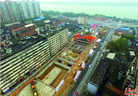12月13日,長沙市勞動路與書院路交叉口西側,地鐵3號線靈官渡站車站主體已基本成型,本月下旬將正式完工,之后將有4臺盾構機從靈官渡站始發(fā)。目前,3號線一期工程已全面進入盾構施工階段,全線共有9臺盾構機參與掘進作業(yè),預計春節(jié)前下穿湘江。 記者 李健 攝