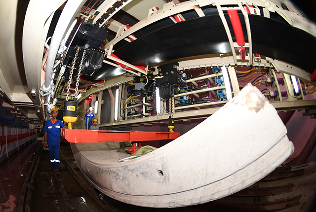5月26日上午,長沙地鐵5號線華雅站建設現(xiàn)場,施工人員在操作盾構機。當天,5號線在華雅站新增一臺盾構機,這是5號線全線第9臺下井的盾構機。目前,5號線18個車站中已有2個車站完工,計劃2020年開通。湖南日報記者 田超 攝