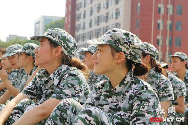 同學(xué)們?cè)谡J(rèn)真聽教官講述齊步走訓(xùn)練科目要點(diǎn)。 “向左轉(zhuǎn)、向右轉(zhuǎn)……”在響亮的口號(hào)聲和吶喊聲中,湖南女子學(xué)院的同學(xué)們,今天開始了上大學(xué)的第一課。 -