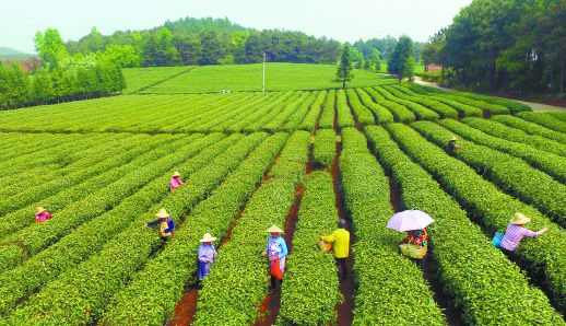 4月1日,衡南縣寶蓋有機(jī)茶場(chǎng),采茶工在搶采“明前茶”。近年來,該縣將發(fā)展有機(jī)茶葉產(chǎn)業(yè)作為脫貧攻堅(jiān)、鄉(xiāng)村振興的重點(diǎn)產(chǎn)業(yè),通過龍頭企業(yè)帶動(dòng),采取“公司+合作社+基地+農(nóng)戶”模式,在寶蓋鎮(zhèn)建設(shè)千畝有機(jī)茶園,讓更多的老百姓實(shí)現(xiàn)家門口就業(yè),助力精準(zhǔn)脫貧。