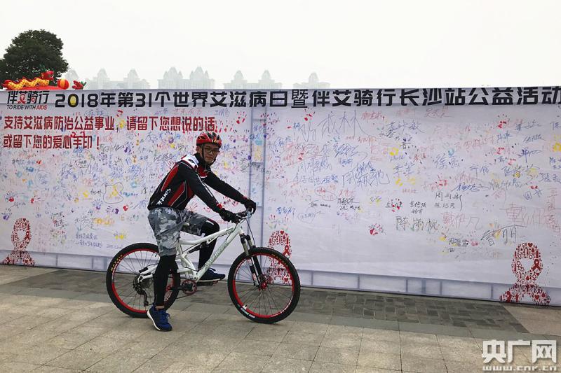 據(jù)了解,“伴艾騎行”是一項(xiàng)于2015年由公開身份的艾滋病病毒感染者劉九龍先生發(fā)起的公益活動,活動旨在通過全民參與的自行車體育運(yùn)動的方式關(guān)注艾滋病防治問題,號召全社會了解艾滋病、認(rèn)識艾滋病、減少對艾滋病的歧視和誤解。2018年,這一公益活動已在南昌、武漢、長沙三地舉辦。